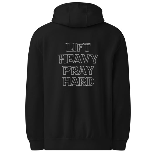 Lift Heavy, Pray Hard - Unisex premium mid-weight hoodie